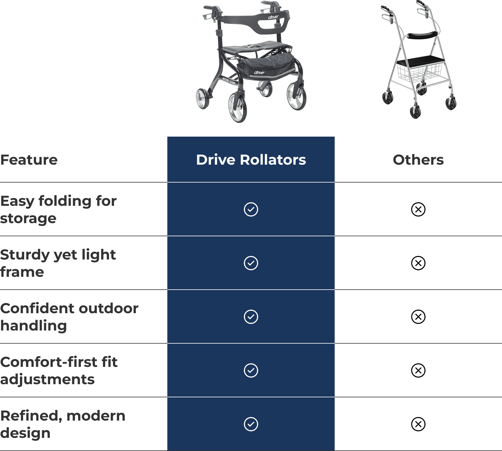 Drive rollators are trusted in hospitals, recommended by therapists, and chosen by millions of families. The only question left is, will you take the step toward easier days now?