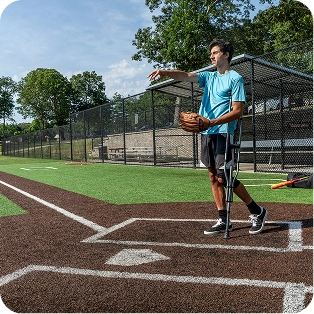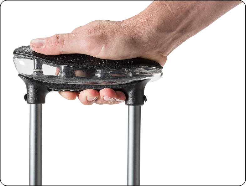 Air-Crutches feature patented Airgonomic™ underarm cushions with 57.9% thicker padding and 21% more surface area than standard crutch pads. The layered air bladder and foam design disperses pressure where you feel it most, reducing pain and discomfort during recovery. Plus, the naturally angled soft gel handles deliver 27.6% less pressure on your hands and wrists.