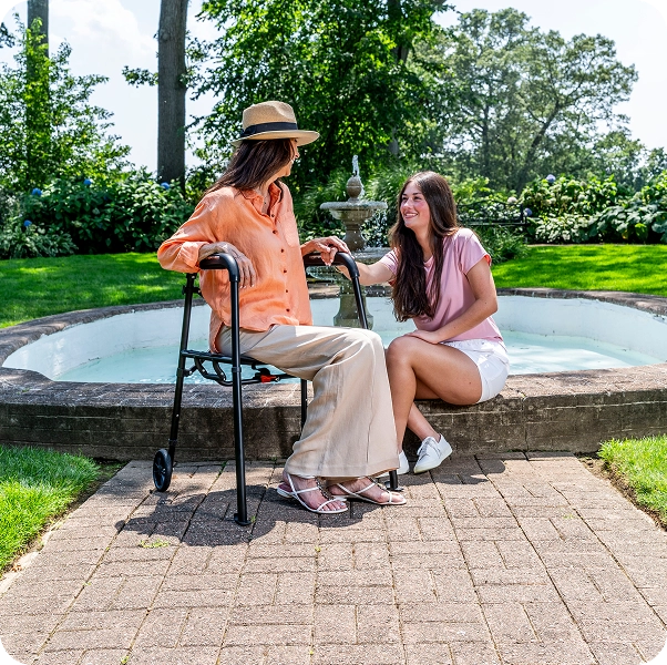 A ¾-length padded mesh seat offers a natural walking stride while giving you a safe, supportive place to sit when you need it.